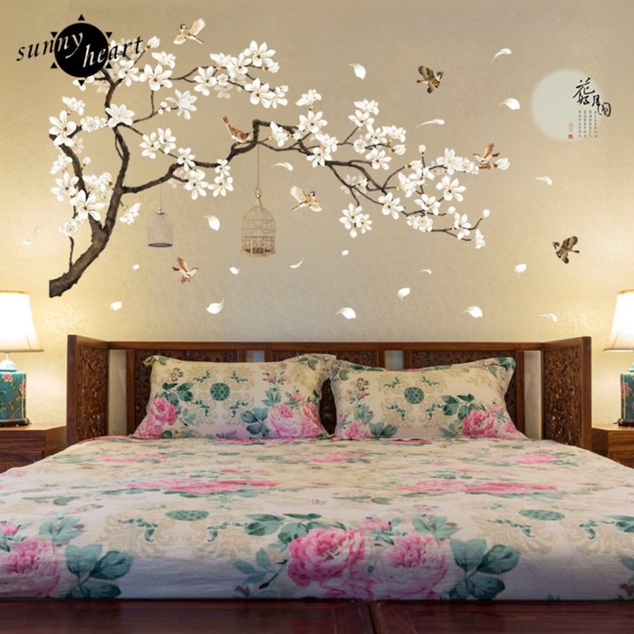 Chinese Style White Flowers Wall Stickers Removable Diy Wall Art