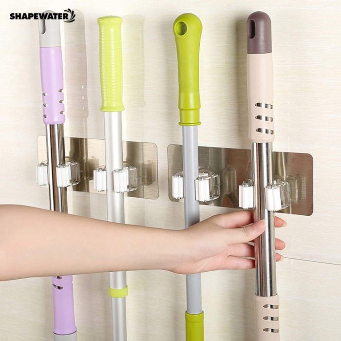 Jual Sw Dual Hooks Wall Mounted Mop Holder Rack Organizer