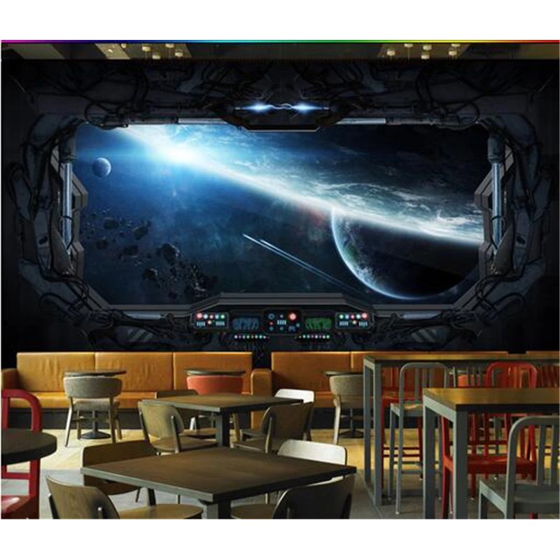 Custom 3d Photo Wallpaper Personality Space Ship Restaurant