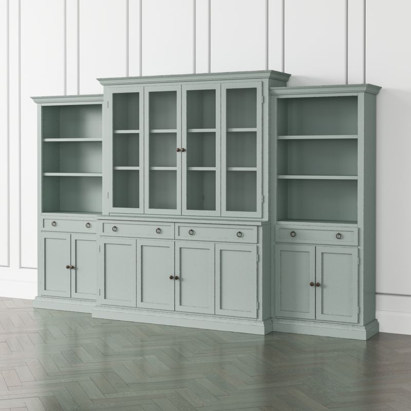 Cameo Blue Grey 4 Piece Glass Door Wall Unit With Storage Bookcase